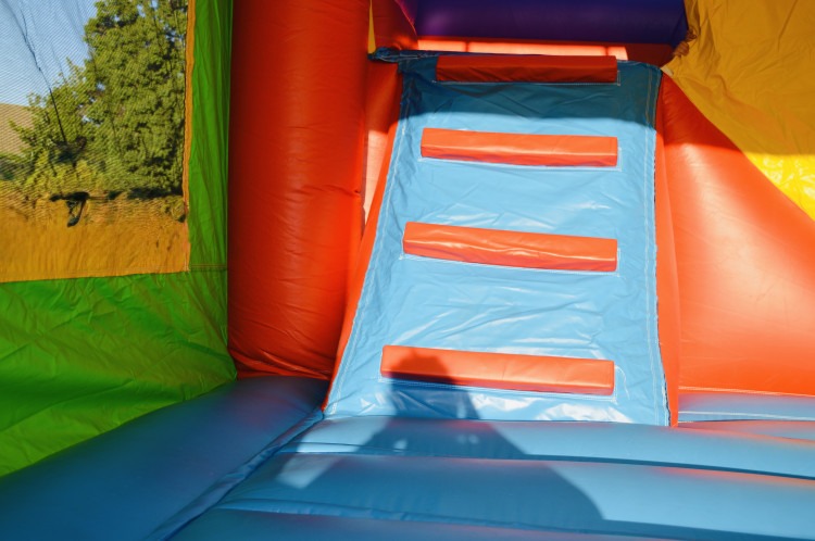 - OCCUPANCY: A maximum of 5-6 kids of equal size at one time for bounce houses, and 1 person at a time for slides is what most inflatable manufacturers recommend.